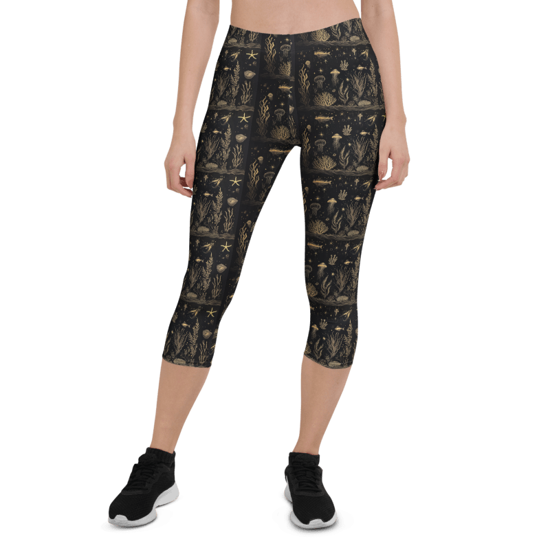 fish+coral blk gold athletic capri + top combo set for women